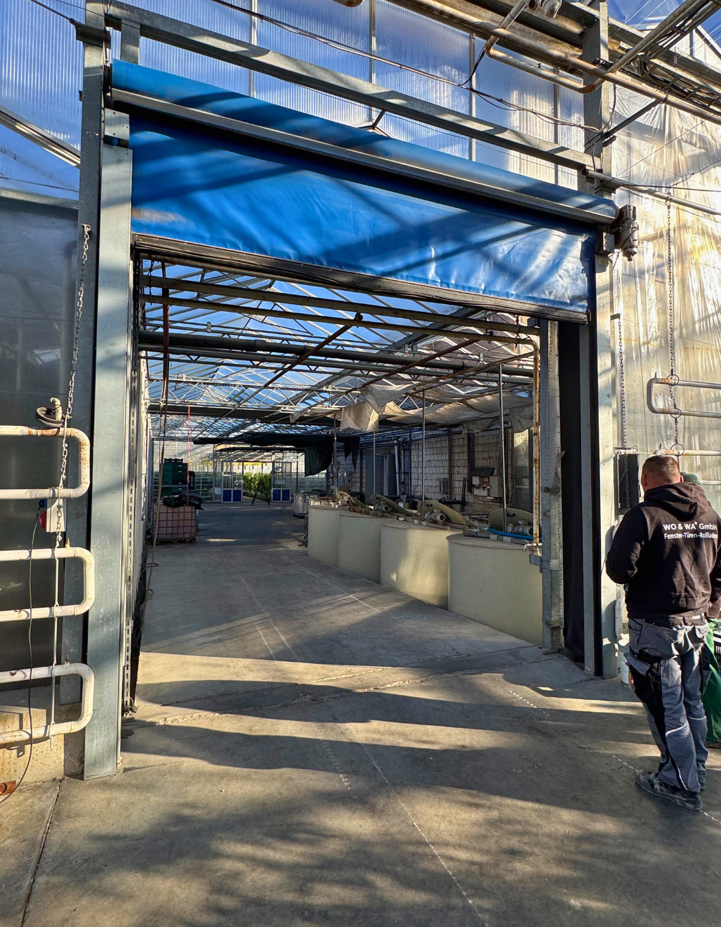 W zakładzie ogrodniczym wykonaliśmy montaż czterech bram elastycznych Hörmann V 5015 SEL oraz pomiary pod kolejne dwa otwory. Realizacja obejmowała pełen zakres prac – od pomiaru, przez dostawę, po montaż i uruchomienie.