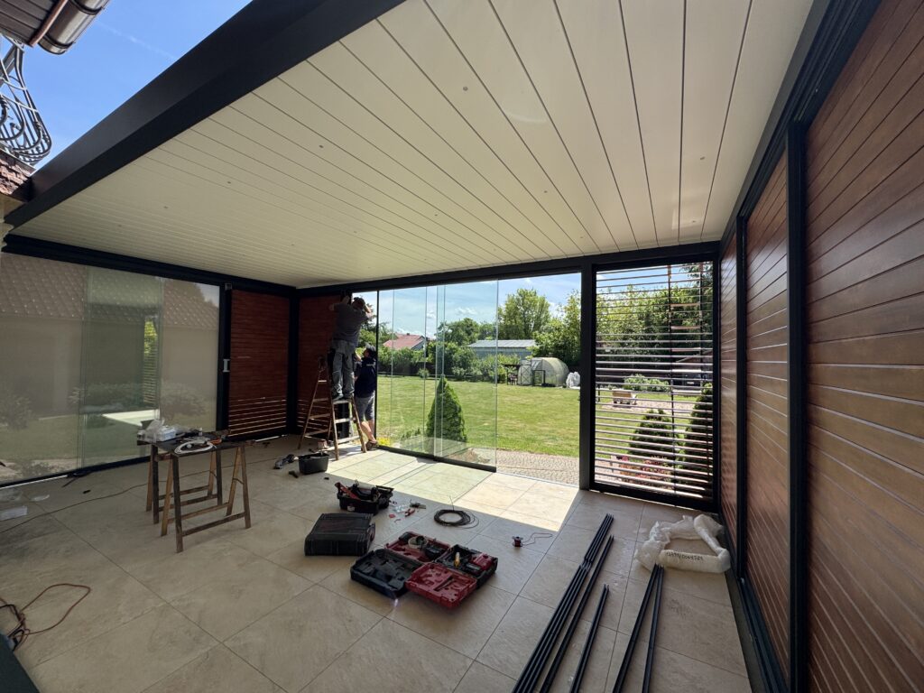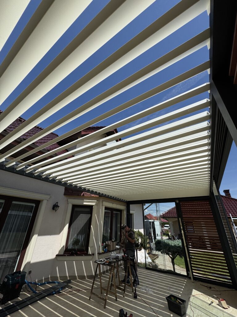 Aluminiowa pergola z automatyką i oświetleniem