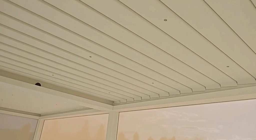 Całość obsługiwana jest radiowo z pilota – od regulacji lameli po oświetlenie LED i screener’y ZIP. Klient może dostosować nastrój i stopień zacienienia jednym kliknięciem.