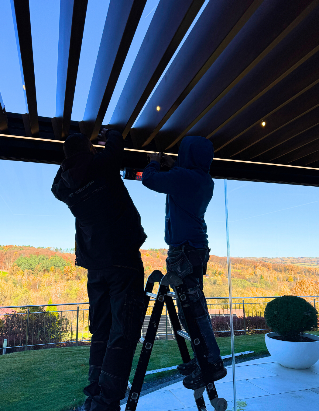 W Rzeszowie zrealizowaliśmy montaż jednej z najbardziej zaawansowanych konstrukcji w ofercie Tarasola – Pergoli Technic Pro o wymiarze 480 × 386 cm. To ekskluzywne zadaszenie tarasowe wykonane z aluminiowej konstrukcji o przekroju 15 × 15 cm, w kolorze czarnym, odpornej na korozję i zmienne warunki atmosferyczne.