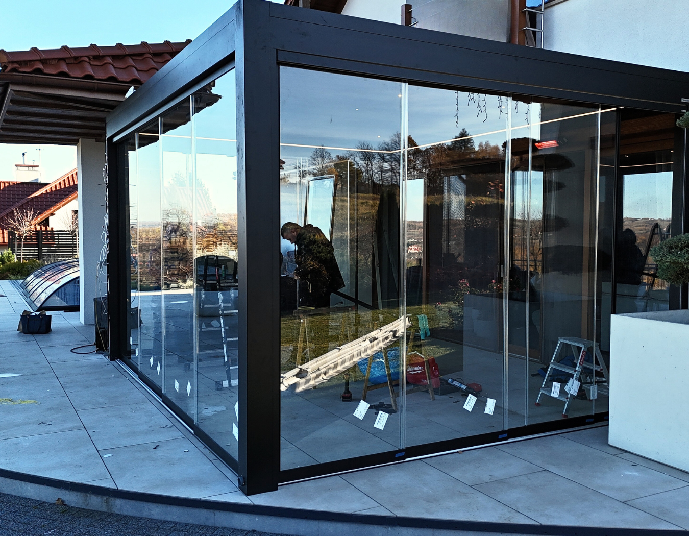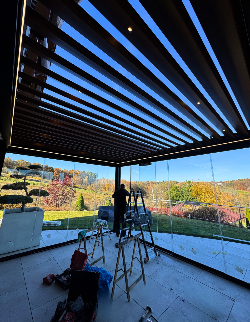 Pergola 5x4 Technic Pro z przeszkleniami i roletą ZIP w Rzeszowie